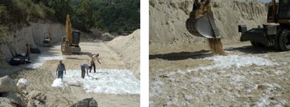該技術通過將離散的短纖維絲(人工合成或者天然植物纖維)均勻摻入土體中,通過纖維和土顆粒之間的界面力學作用及纖維的拉筋作用,達到顯著提高土體的工程力學性能的目的。同傳統技術相比,該技術的具有如下優勢:(1)纖維與土體作用屬于物理過程,不改變土體的自然屬性,綠色環保;(2)纖維在土體中隨機分布,具有三維加筋作用,土體加固后具有各向同性特點;(3)纖維加筋的施工工藝簡單,工程性價比較高;(4)纖維加筋不僅具有顯著的增強效果,還能有效抑制土體破壞裂隙的發育。